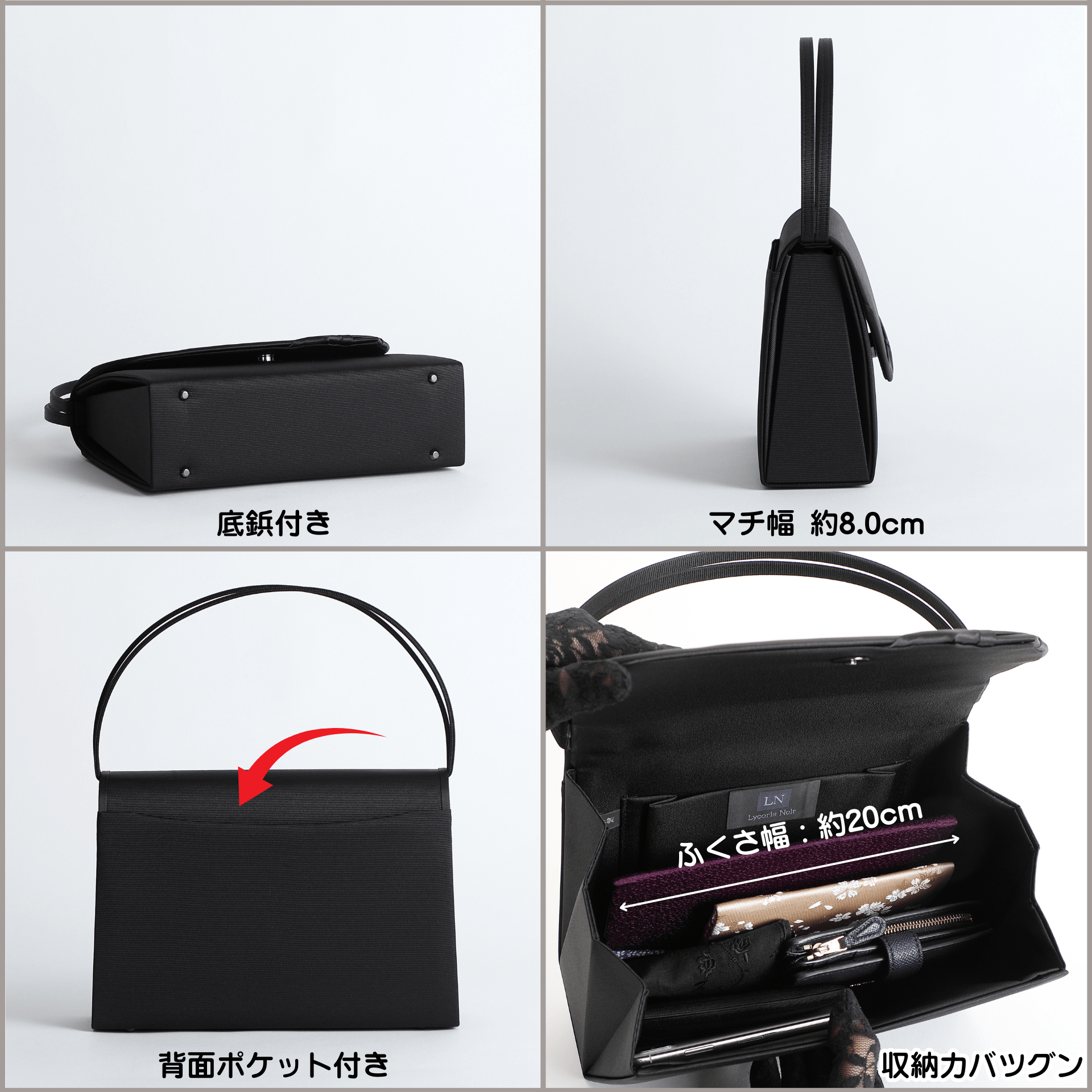 【LN-B26】日本製 定番 2本手 フォーマルバッグ はっ水 慶弔両用 冠婚葬祭 背面ポケット付き|Lycorisnoir(リュコリスノアール)